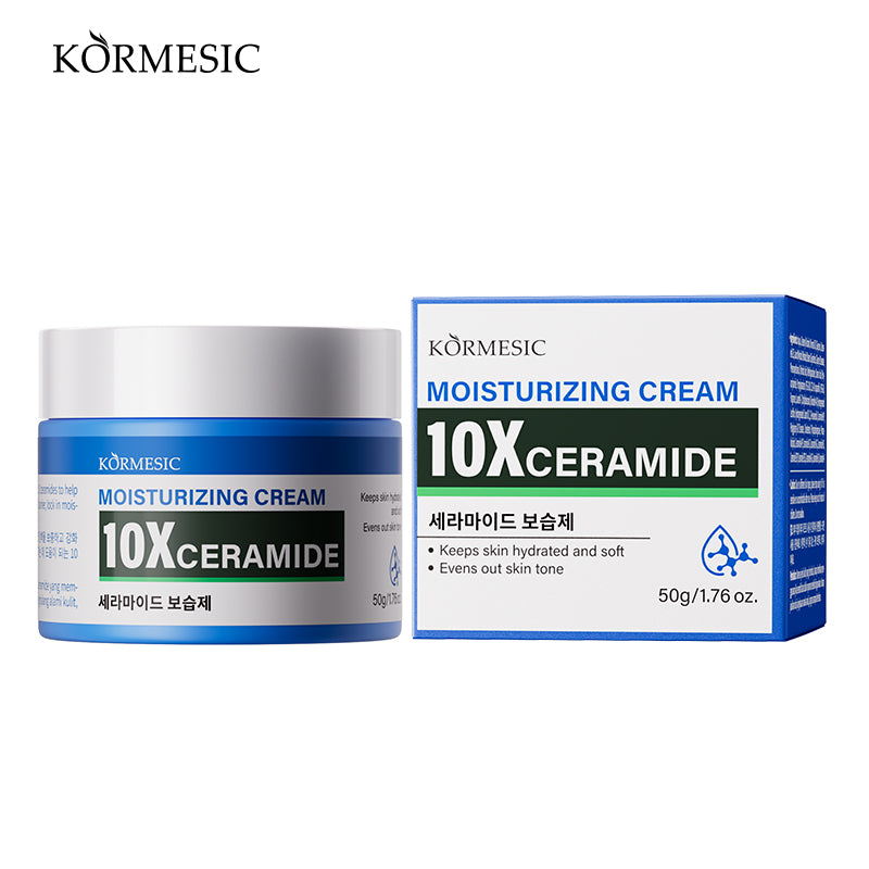 KORMESIC 10X Ceramide Moisturizing Cream adalah pelembap intensif yang diperkaya dengan kompleks ceramide 10X untuk menghidrasi secara mendalam, memperbaiki, dan memperkuat lapisan pelindung kulit. Krim yang kaya ini membantu mengunci kelembapan, meningkatkan elastisitas kulit, dan mengembalikan kulit yang lembut, halus, dan bercahaya, sehingga ideal untuk kulit kering, sensitif, atau dehidrasi.