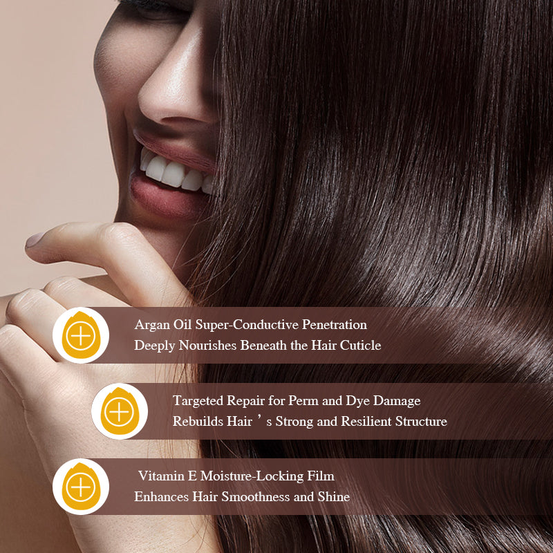 KORMESIC Argan Oil Smoothing Hair Mask is a deeply nourishing treatment enriched with argan oil to smooth frizz, restore moisture, and enhance hair shine. Its rich, creamy formula penetrates the hair fibers to repair dryness and damage, leaving hair silky, soft, and manageable.